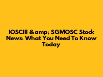 IOSCIII & SGMOSC Stock News: What You Need To Know Today